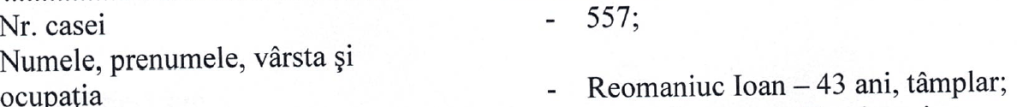 Surname, name, age, and profession: Reomaniuc Ioan, 43 years old, carpenter.