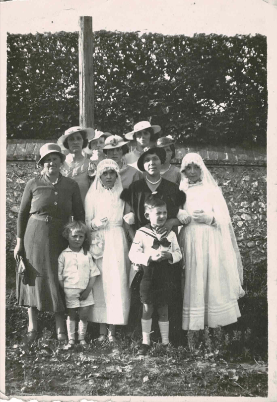 Sur ce premier cliché, des années 20, on peut voir Gertruda en noir, avec les sœurs Merlot (en arrière-plan) et probablement Céline LEMAITRE (à gauche), épouse de Vital MERLOT, son beau-frère.
