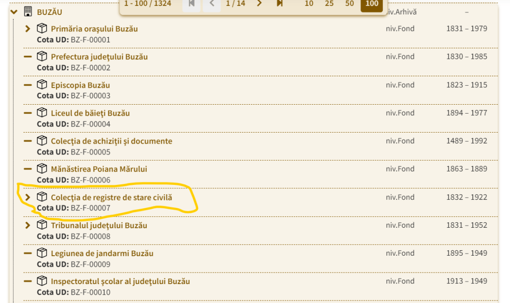 IV. À ce moment, recherchez l’onglet colecția de registre de stare civilă (collection de registres d’état civil). L’onglet peut être mélangé avec les registres paroissiaux nommés registre parohiale/mitrici parohiale. Soyez patient ! Il peut y avoir un délai avant l’ouverture de l’onglet.
